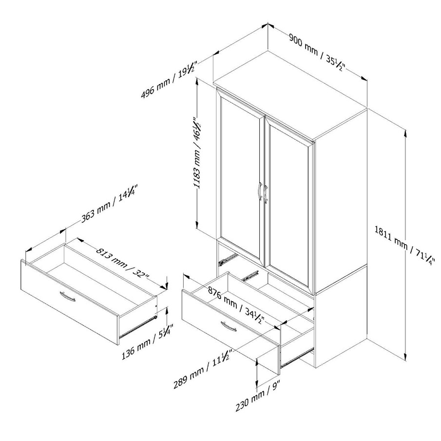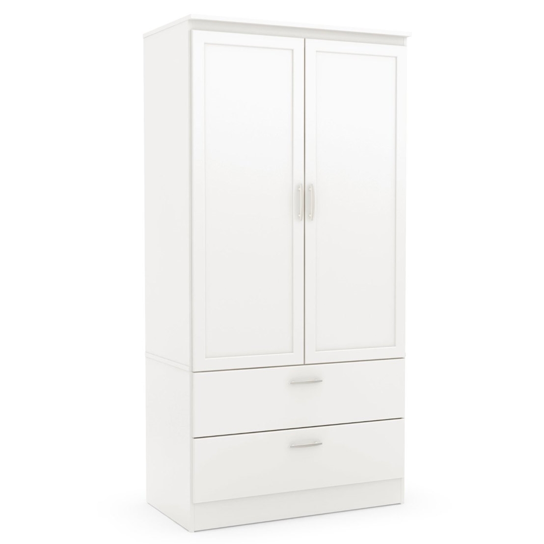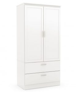 The White Bedroom Wardrobe Cabinet Armoire Chest is a great addition to your home for fulfilling all your storage needs. This armoire features framed doors, streamlined drawers, and elegant nickel finish metal handles, which give a transitional style to fit in with your contemporary home decor. This functional armoire wardrobe features three storage spaces, two adjustable shelves, 2 large wood fiber drawers with metal slides, a metal rod for hanging clothes, and 2 hooks behind the door. The Wardrobe Armoire is eco-friendly, as it has been manufactured from environmentally certified laminated particle panels.