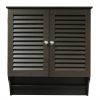 Expand storage capacity in the bathroom with this White Bathroom Wall Cabinet Cupboard with Open Shelf that features classic design and attractive detailing such as inset doors and side panels, covered top shelf and two-tone satin/mirror finish handles. Top shelf dimensions are 22.5 in. W x 7.875 in. D; inner shelf dimensions 19.25 in. W x 6 in. D.