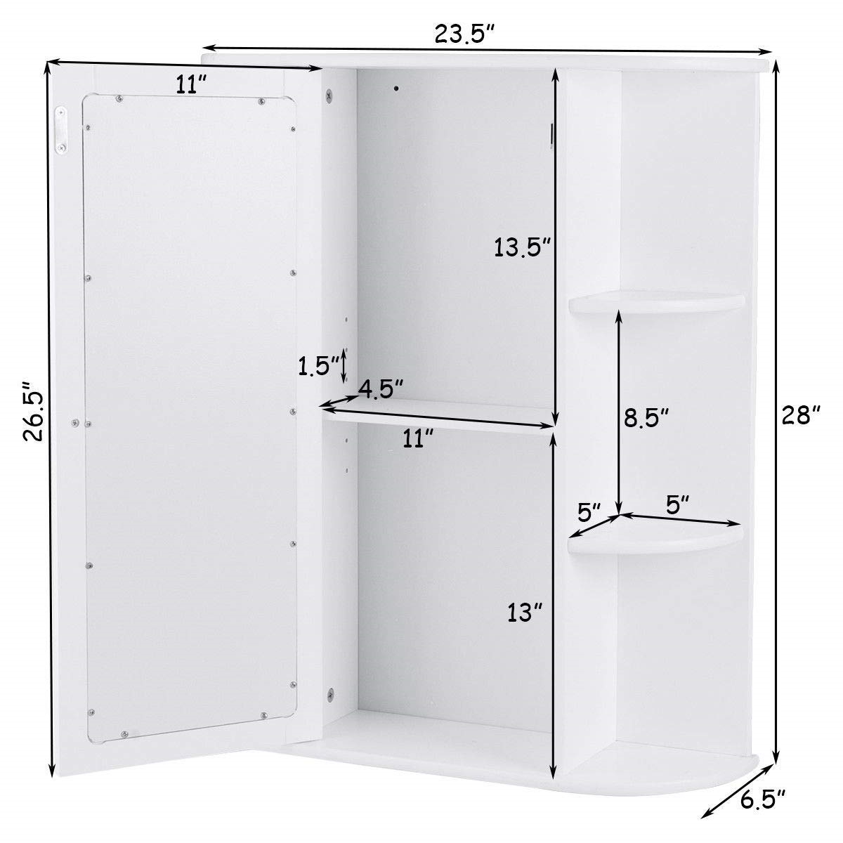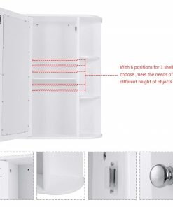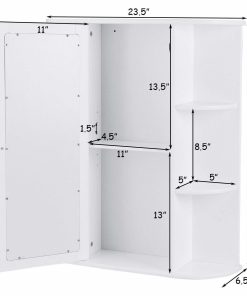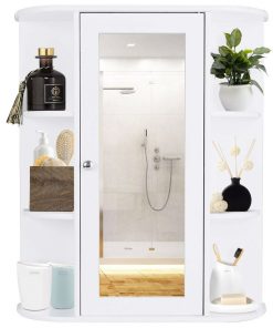 This White Bathroom Wall Mounted Medicine Cabinet with Storage Shelves has a modern look and features open shelves and 1 capacious storage room with a door offer ample storage space. It will help you to keep your things neatly organized. Made of premium white painted MDF, sturdy and durable. It will make a great addition to your bedroom, kitchen, bathroom or any other room in the house. The white paint finish makes it easy to clean with a damp cloth. It will be your excellent choice. Don’t hesitate to buy it now! Ideal for bathroom, bedroom, living room or kitchen, bathroom wall cabinet features enclosed shelf with a mirror door, the mirror door can be opened. There is a lot of space for you to store items. And It also has two open shelves to place towels, soap, tissues and other decorative items. In addition you can also put some green small plants on the open shelves to make your item neat and beautiful.