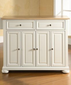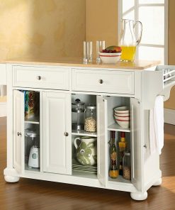 Constructed of solid hardwood and wood veneers, this kitchen island is designed for longevity. The beautiful raised panel doors and drawer fronts provide the ultimate in style to dress up your kitchen. Two deep drawers are great for anything from utensils to storage containers. Behind the four doors, you will find adjustable shelves and an abundance of storage space for things that you prefer to be out of sight. Style, function and quality make this kitchen island a wise addition to your home.