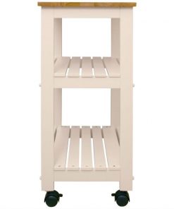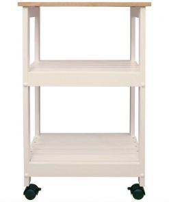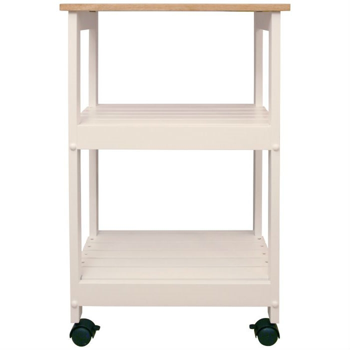 This White Kitchen Microwave Cart with Butcher Block Top & Locking Casters has a classic design and rugged construction that reflect Catskill’s commitment to quality.