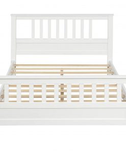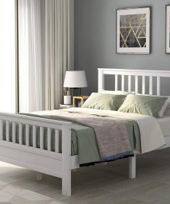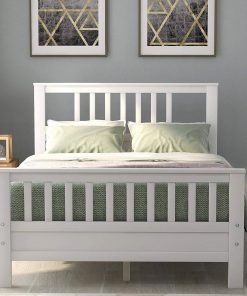 - Brighten your room with the simple elegance of this White Pine Wood Slatted Platform Headboard Footboard Full Size Bed. This sturdy bed frame is made from pine wood and comes with 6 durable legs, 4 center legs, offering strong support for restful nights sleep. This hard wood bed has simple lines and a white tone finish that looks clean and elegant in any bedroom.
