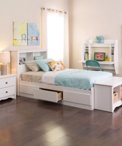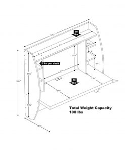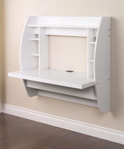 Optimize your space with this White Wall-Mounted Modern Space Saving Laptop Computer Desk. Perfectly suited for any home office, den, living room, kitchen or entryway. The stable work surface is perfect for your computer or simply as a place to get your work done. The side compartments and top shelf provide functional storage and visual appeal. Installation is a breeze with this innovative metal hanging rail system. Proudly manufactured in North America using CARB-compliant, laminated composite wood. Ships Ready to Assemble, includes an instruction booklet for easy assembly and has a 5-year manufacturer’s limited warranty.