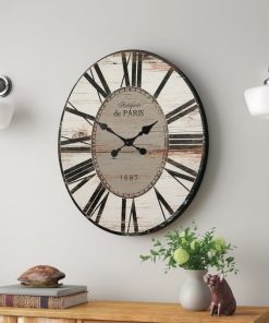 The White Washed Oversized Distressed Paris Wood Wall Clock is oval shaped and full of old world charm. Why settle for a simple wall clock to merely ensure the time. Bring both function and Paris flair to your space with this wall clock. It showcases a typographic motif in the center. This wooden wall clock is large enough to become an eye catching focal point in any room. The classy style of this clock is the epitome of elegance from the simple colors to the Roman numerals surrounding its edge. This oval wooden clock will keep track of your time and add farmhouse appeal to your wall decor.