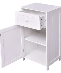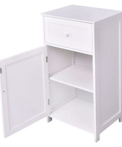 White Wood Bathroom Storage Floor Cabinet with Water Resistant Finish