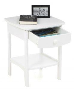 Bedeck your contemporary interiors with this White Wood Contemporary 1-Drawer Bedside Table Nightstand. Simple yet graceful, this nightstand is made out of manufactured wood for strength and durability. Flaunting delicate curves and four straight feet, this nightstand is available in a variety of finishes to choose from. It features one spacious drawer with wooden glides and safety stops that can be used to keep anything from handy utilities to bedtime essentials. White Wood Contemporary 1-Drawer Bedside Table Nightstand also has a small open shelf at the bottom, which can accommodate your books or magazines. Wipe this nightstand with a clean, dry cloth to keep dust and grime away.