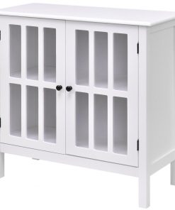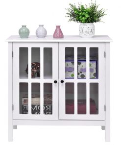 This White Wood Sideboard Buffet Cabinet with Glass Panel Doors is an ideal combination of elegance and functionality. This unit features white finish, and modern& stylish style design. Constructed of high quality, non-toxic MDF material, this cabinet is sturdy and reliable. This functional storage cabinet has 2 tempered glass doors that open to two shelves for versatile storage .The classic white paint on the contemporary furniture will surely compliment any room decor. It will be your excellent choice to buy, don’t hesitate and buy!
