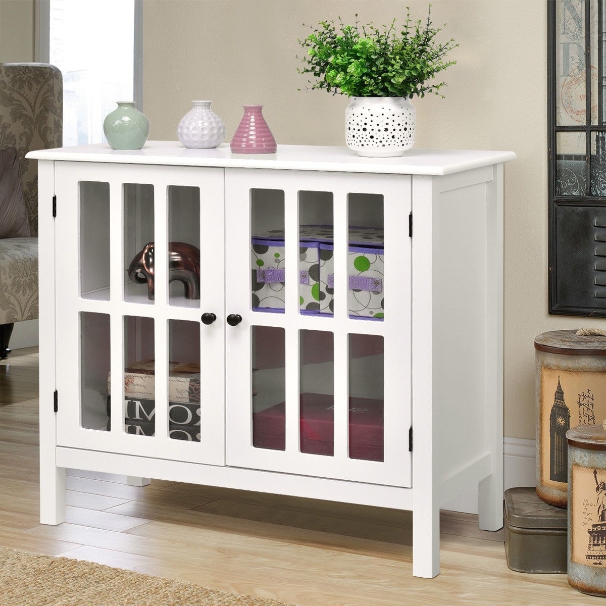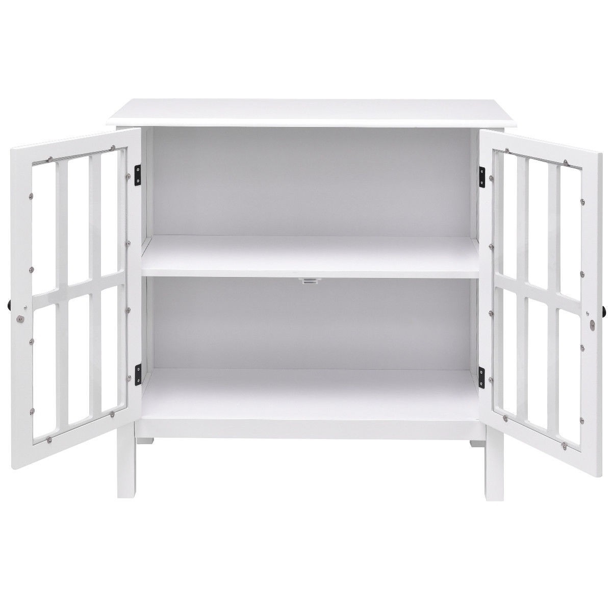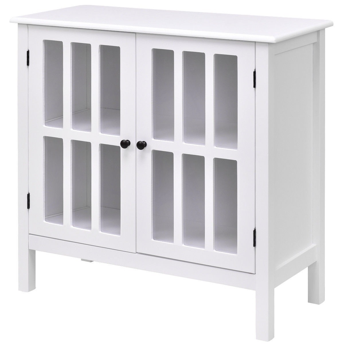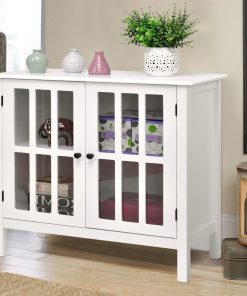 White Wood Sideboard Buffet Cabinet with Glass Panel Doors