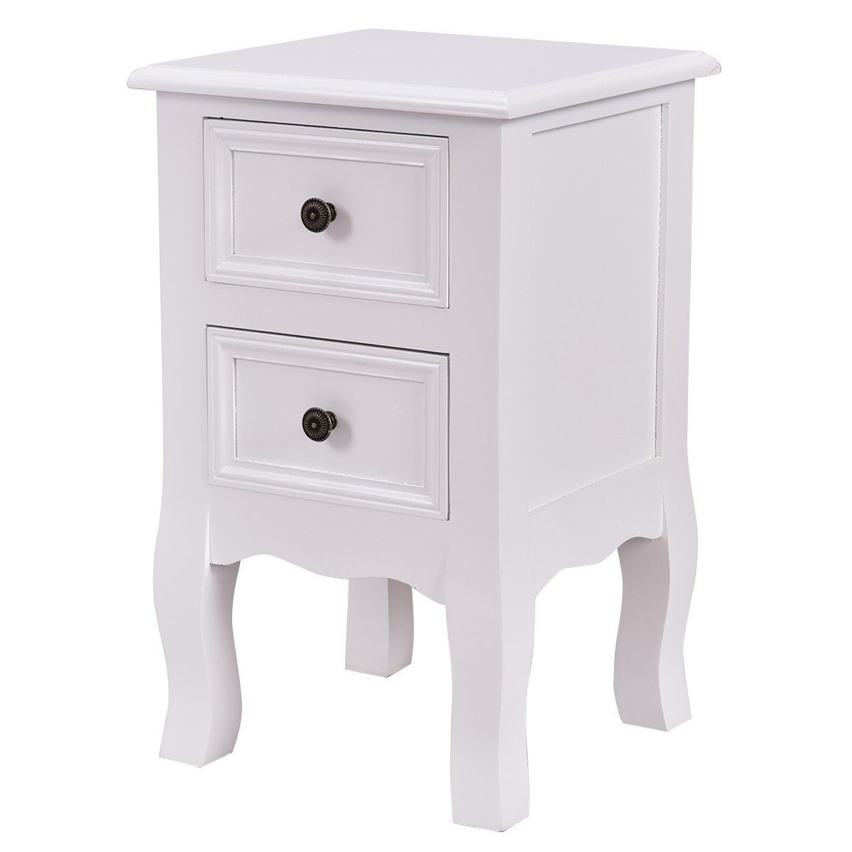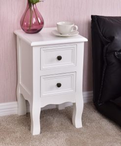 This White Wooden 2-Drawer Accent End Table Nightstand is a perfect addition for home decor. The pretty color matches your home settings easily. You can place it anywhere in your home. The nightstand or accent table has plenty of storage including one drawer and one cabinet, which thoughtfully help you store all the little things. It will give you a neat and clean home. Don’t hesitate to buy it! Durable Solid Wood Frame: This White Wooden 2-Drawer Accent End Table Nightstand uses solid wood as frame to avoid warp or damage easily. It greatly extends the night stand service life. Exquisite Workmanship: We specially designed the night stand legs with graceful arc and table edges are carefully polished to provide intimate protection against bump.2 Layers of Storage Space: A perfect piece of home furniture for storage function, with 2 drawers to help you sort out things and make your room clean and neat.