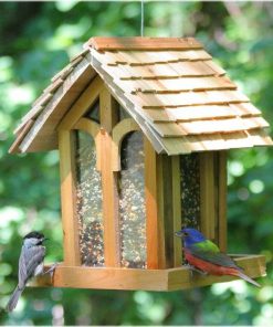 - Wood House Shingled Roof Garden Bird Feeder with Perch