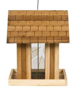Welcome a multitude of feathered seed worshippers into your yard when word gets out you’ve got a Wood House Shingled Roof Garden Bird Feeder with Perch on display. Your avian guests will find 3.5 lb of their favorite seeds and a generously-sized tray on which several can perch while dining. The strong and sturdy fir construction ensures years of durable bird-feeding delight, and the thoughtful design enables quick filling and easy cleaning. A graceful leaf print on the feeder’s transparent windows lends even more natural beauty to your enchanted garden and lets you keep an eye on the seed levels for your devoted flock.