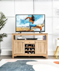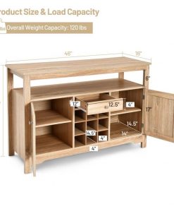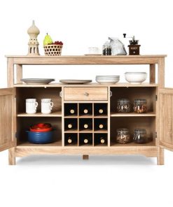 Wood Sideboard Dining Buffet Server Cabinet with Wine Rack and Storage Shelf