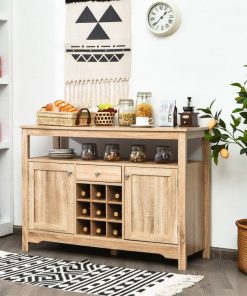 • Wood Sideboard Dining Buffet Server Cabinet with Wine Rack and Storage Shelf