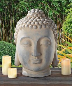 Awaken your spiritual side with the Zen Garden Outdoor Buddha Head Statue, larger-than-life Buddha statue. Perfect as the focal point in a Japanese ornamental garden or as a sanctuary for meditation along a path in a spiritual garden, this enlightenment sculpture also creates an instant contemplation spot in a quiet indoor sanctuary. Cast in quality designer resin with an aged matte finish, this Asian Buddha sculpture is a timeless statement piece with the appeal of ancient art